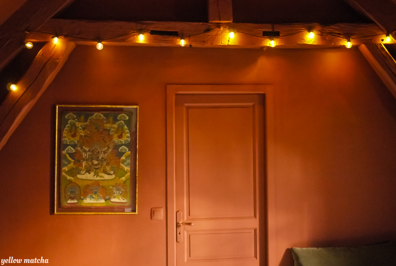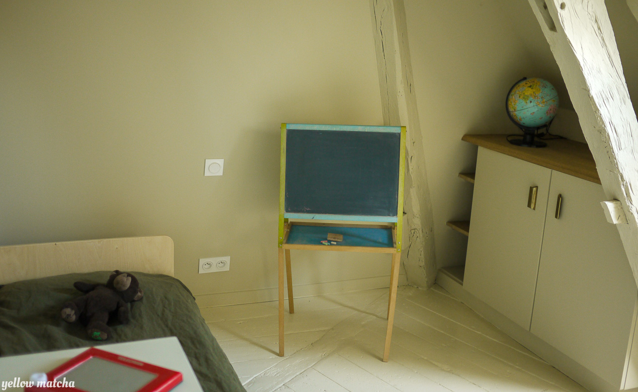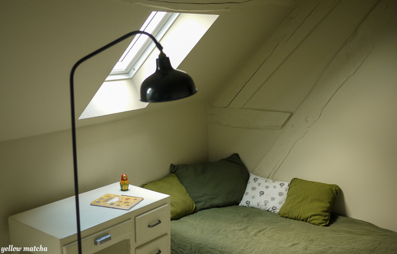 Envie de couleurs pour décorer et aménager cet étage en sous-pente composé d’un palier et de trois chambres. Le palier est traité comme un boudoir d’un rouge-brun sombre et intense qui confère à cet espace de passage l’intimité relaxante d’un petit salon. Nous avons ensuite doté chaque chambre de sa propre couleur lui donnant une atmosphère unique. Pour parfaire l’immersion, la couleur court des murs aux plafonds et incorpore certaines pièces de mobilier vintage ou sur mesure. L’unité de l’étage est obtenue par le sol, traité de manière uniforme dans un faux-blanc rappelant les planchers flamands. La sélection de mobilier et de luminaires mélange les époques pour conférer à l’ensemble l’âme d’un lieu habité depuis toujours.