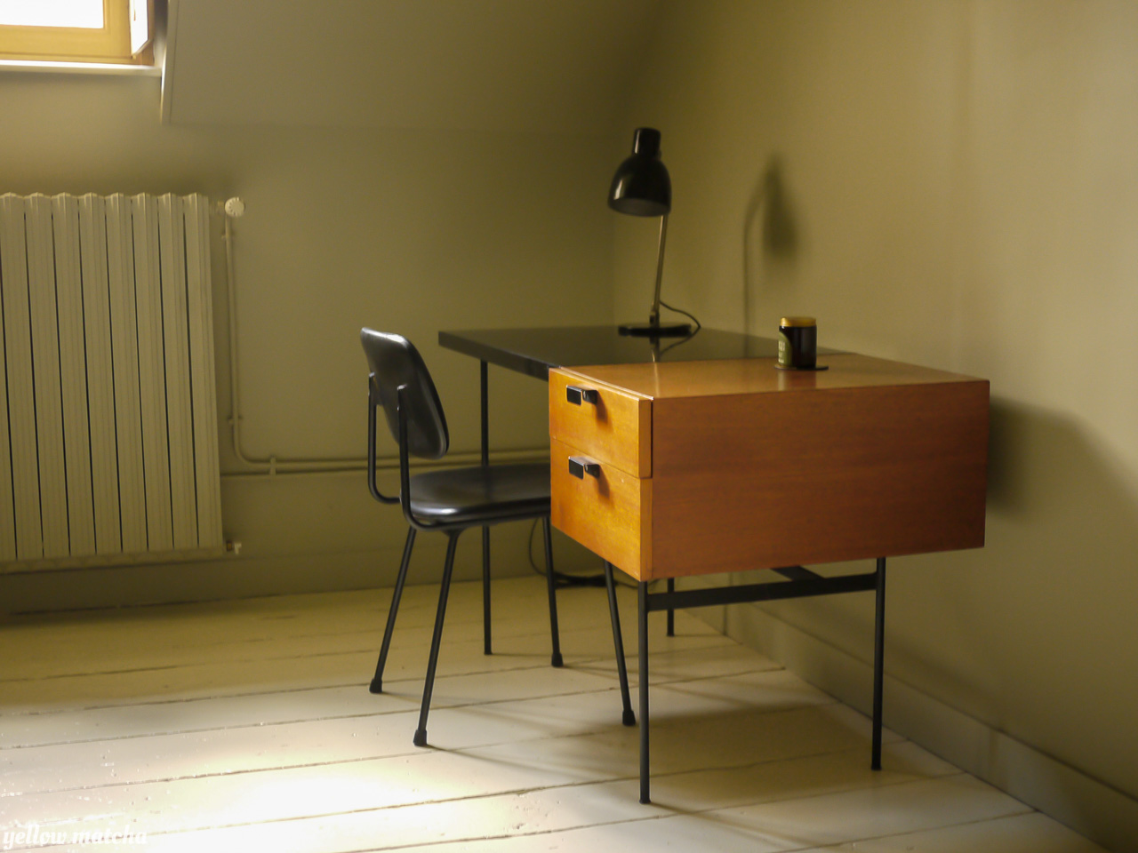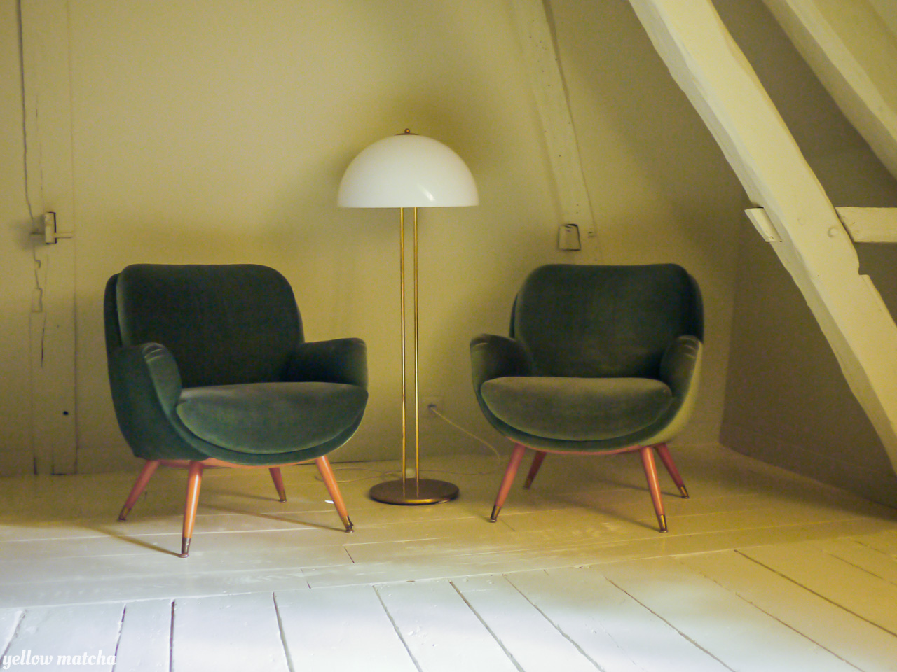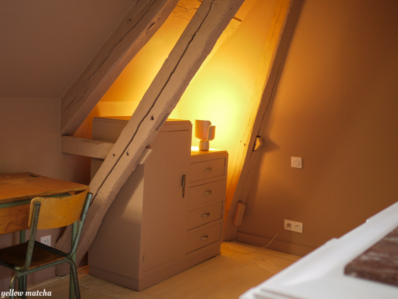 Envie de couleurs pour décorer et aménager cet étage en sous-pente composé d’un palier et de trois chambres. Le palier est traité comme un boudoir d’un rouge-brun sombre et intense qui confère à cet espace de passage l’intimité relaxante d’un petit salon. Nous avons ensuite doté chaque chambre de sa propre couleur lui donnant une atmosphère unique. Pour parfaire l’immersion, la couleur court des murs aux plafonds et incorpore certaines pièces de mobilier vintage ou sur mesure. L’unité de l’étage est obtenue par le sol, traité de manière uniforme dans un faux-blanc rappelant les planchers flamands. La sélection de mobilier et de luminaires mélange les époques pour conférer à l’ensemble l’âme d’un lieu habité depuis toujours.