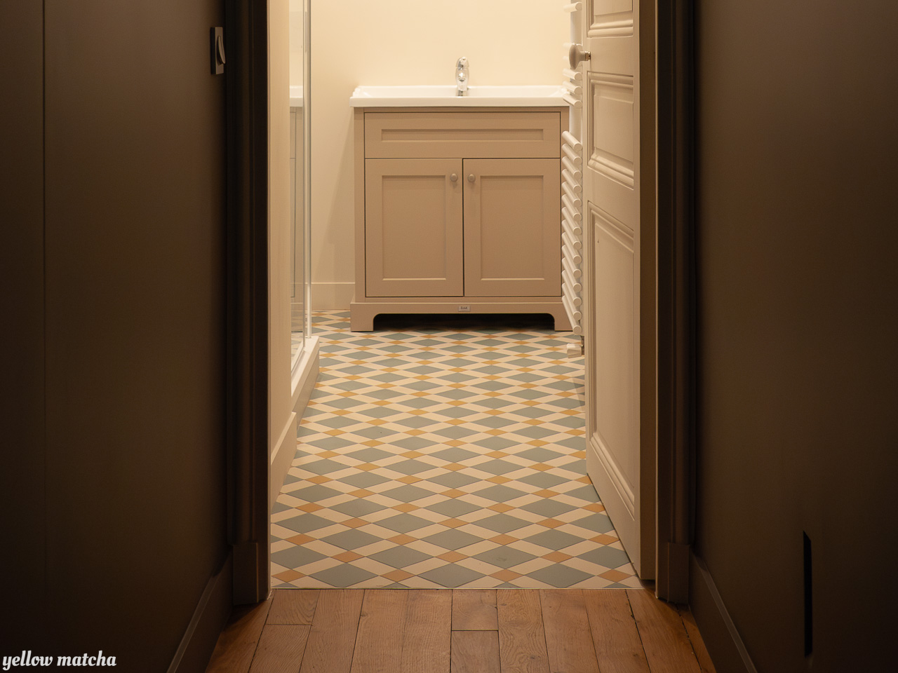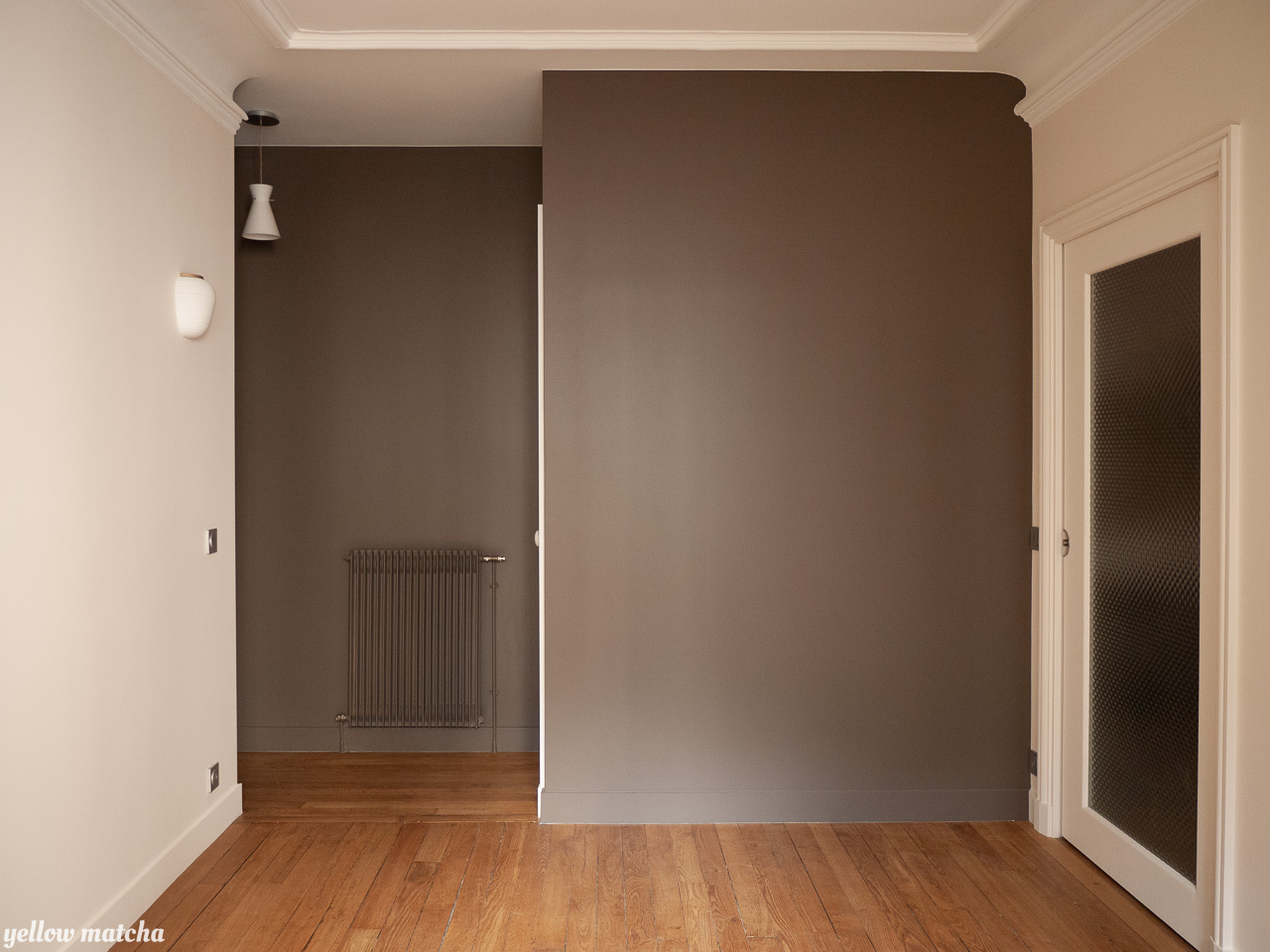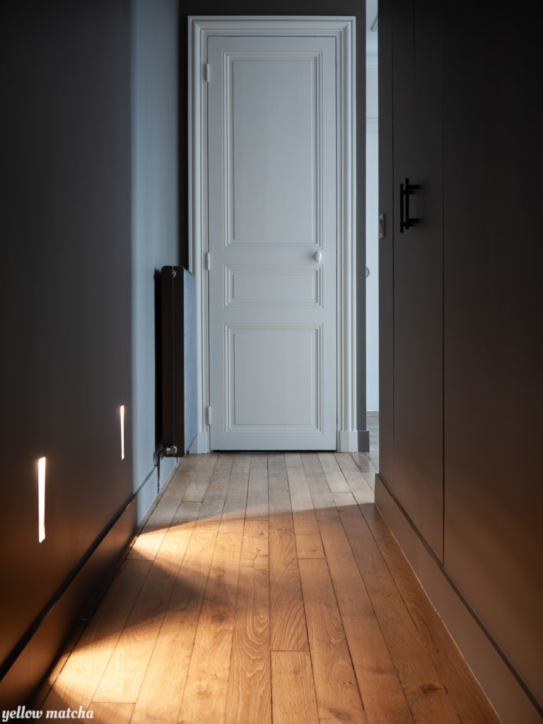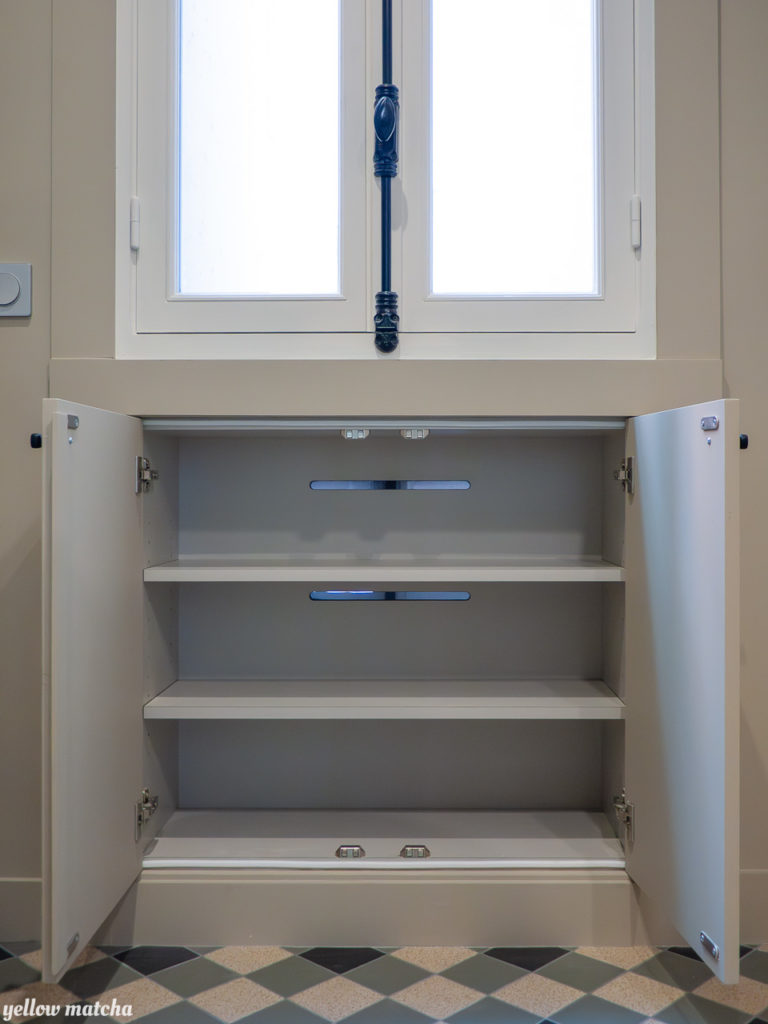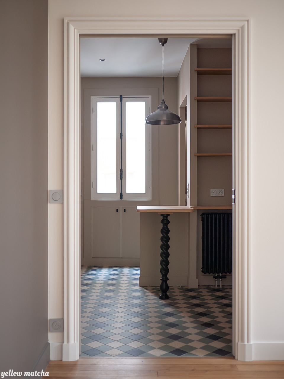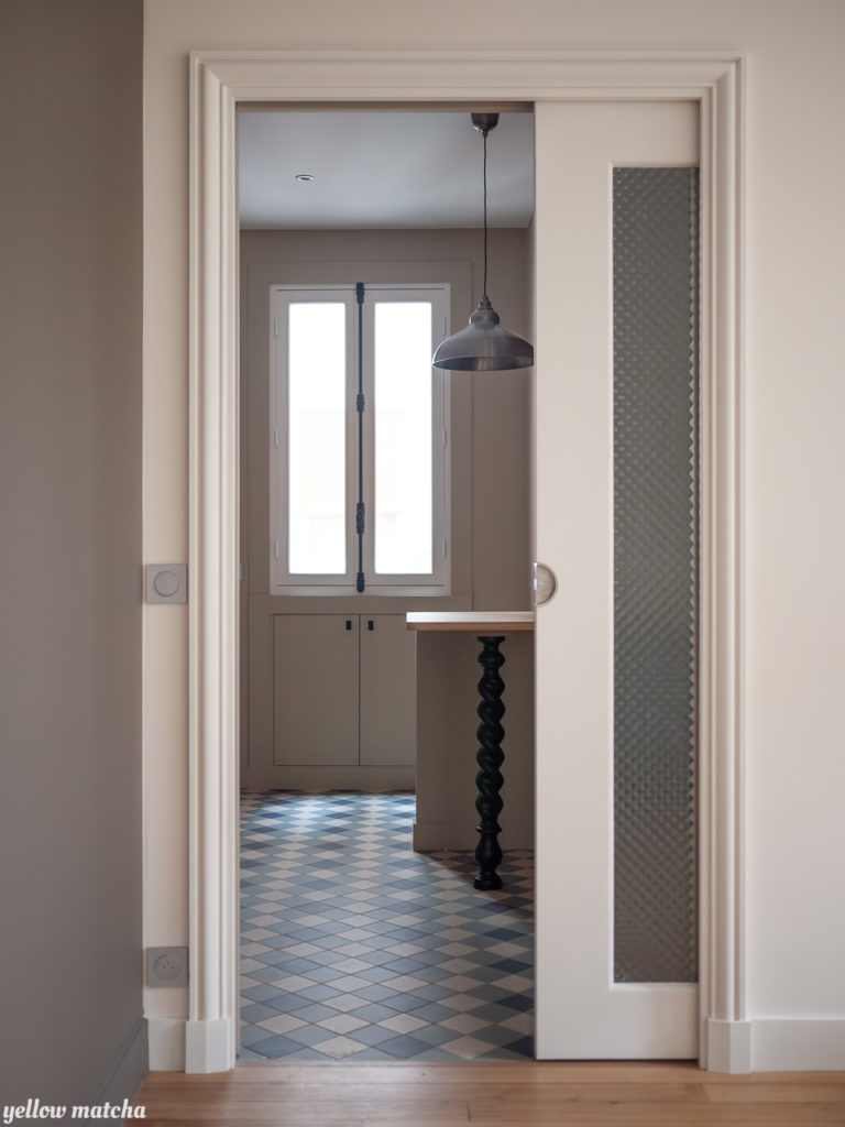 Pour redonner charme et douceur à cet appartement XIXème défiguré par une rénovation des années 80, nous avons mis l’accent sur les compositions de carrelages, une palette de couleurs chaudes et la restauration d’éléments anciens comme les fenêtres, les moulures ou encore le garde-manger qui avait été condamné.