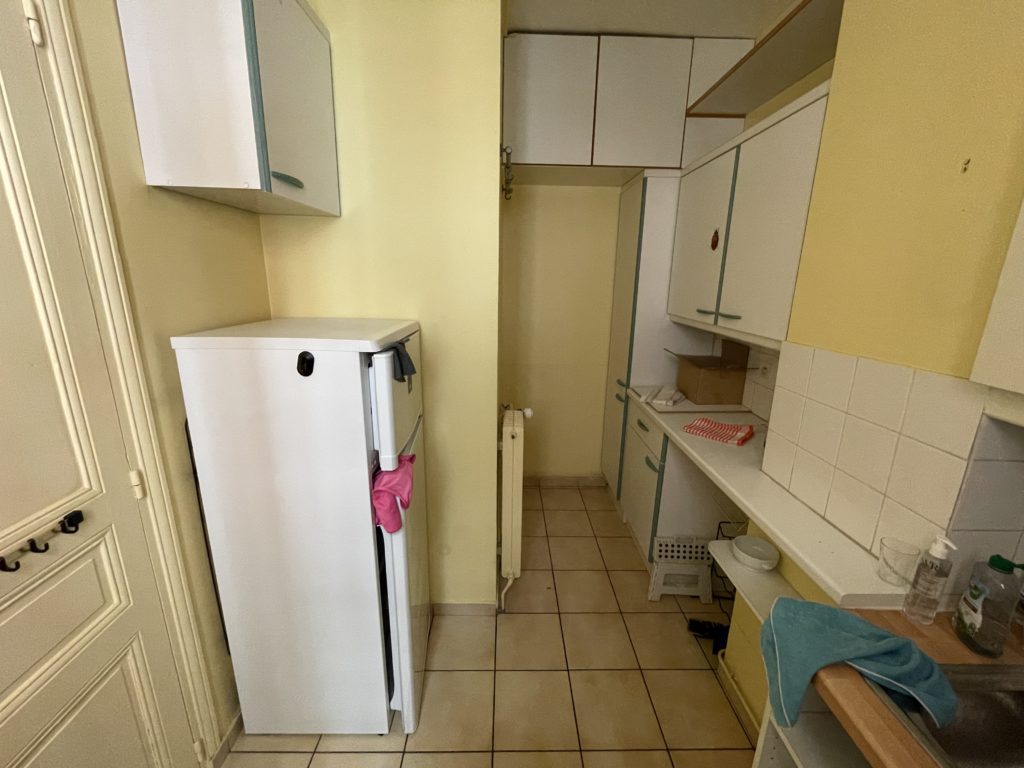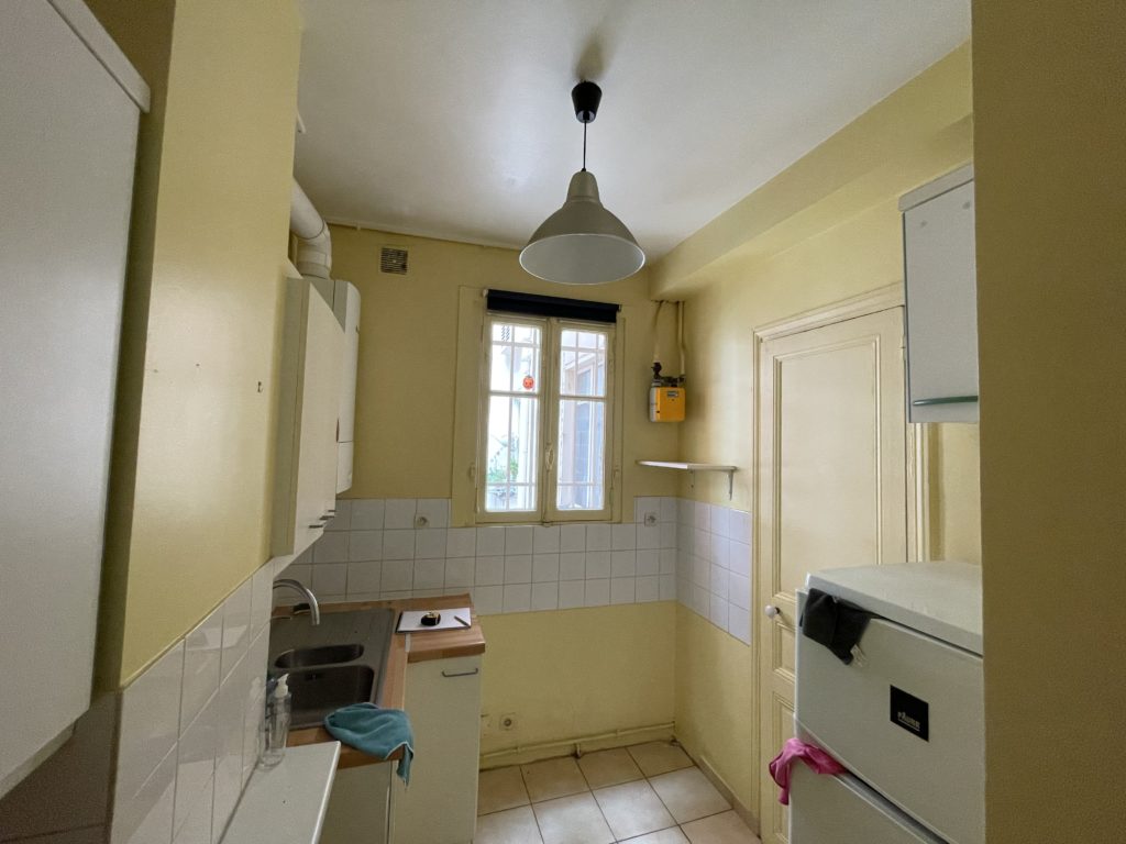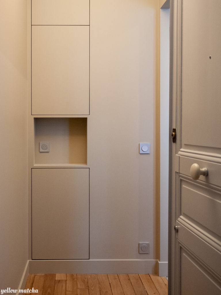 L’ensemble entrée / cuisine / salon / WC a été entièrement repensé pour agrandir la cuisine et faciliter la circulation avec le séjour tout gardant les deux zones séparées.